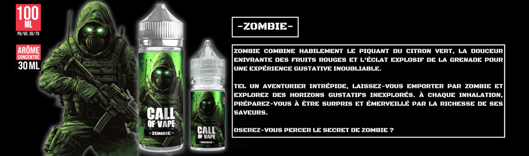 Tel un aventurier intrépide, redécouvrez ZOMBIE et ses horizons gustatifs inexplorés en concentré 30ML !
